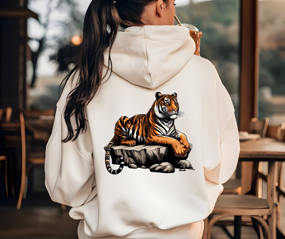 Obojestranski krem hoodie z motivom tigra