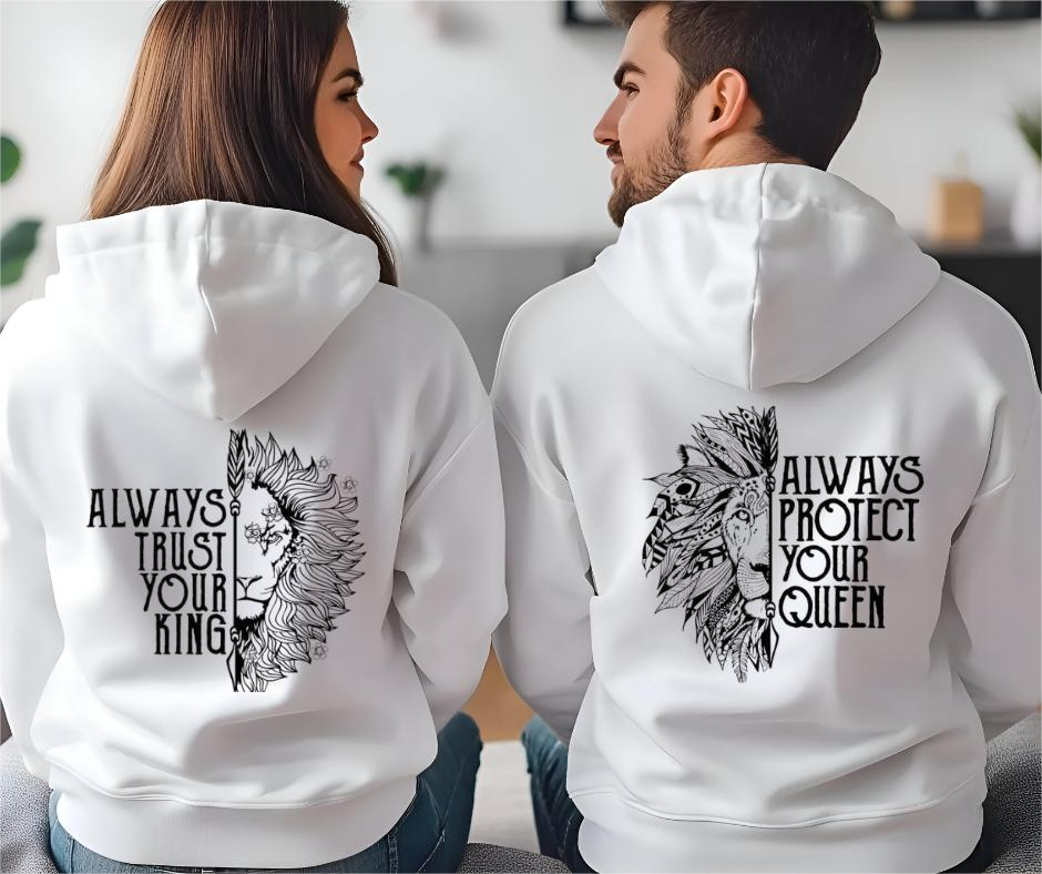 Partnerski puloverji s kapuco Trust Your King & Always Protect Your Queen